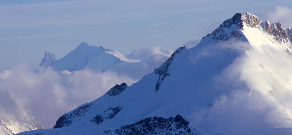 Matterhorn, Weisshorn und Bishorn, rechts das Gletscherhorn