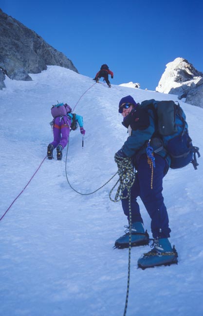 ausgesetzte Steileispassage im ersten Teil des Rochefortgrats