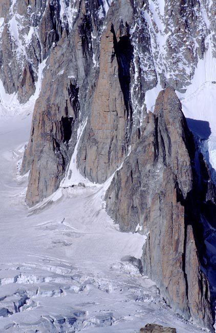 die Granittürme an der Ostseite des Mont Blanc du Tacul