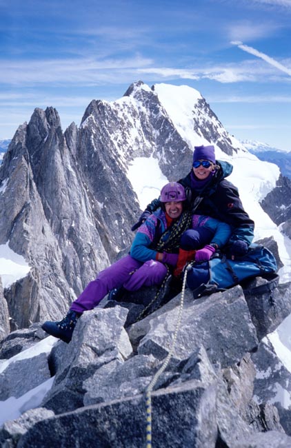 Raimund und Karen am Gipfel des Dome de Rochefort, hinten die Grandes Jorasses