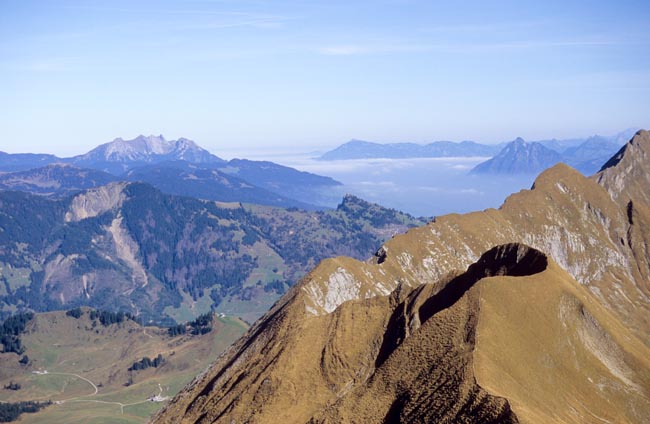 am Tannhorn Gipfel, hinten links der Pilatus (2120m), vorne der Brienzer Grat