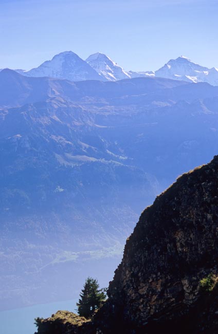 Eiger, Mönch und Jungfrau, unten der Brienzer See