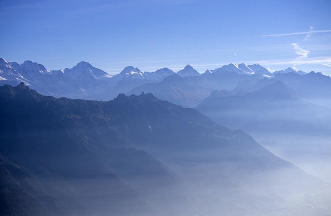 Schynige Platte (vorne, 2100m), hinten rechts die Blüemlisalp (3657m)