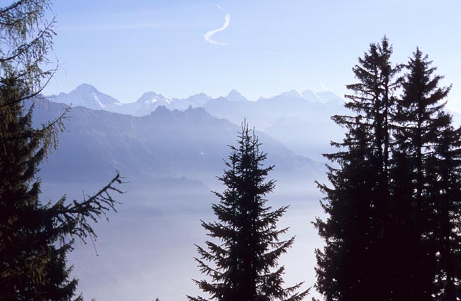 Breit-, Tschingel-, Gspaltenhorn, Blüemlisalp, davor die Schynige Platte